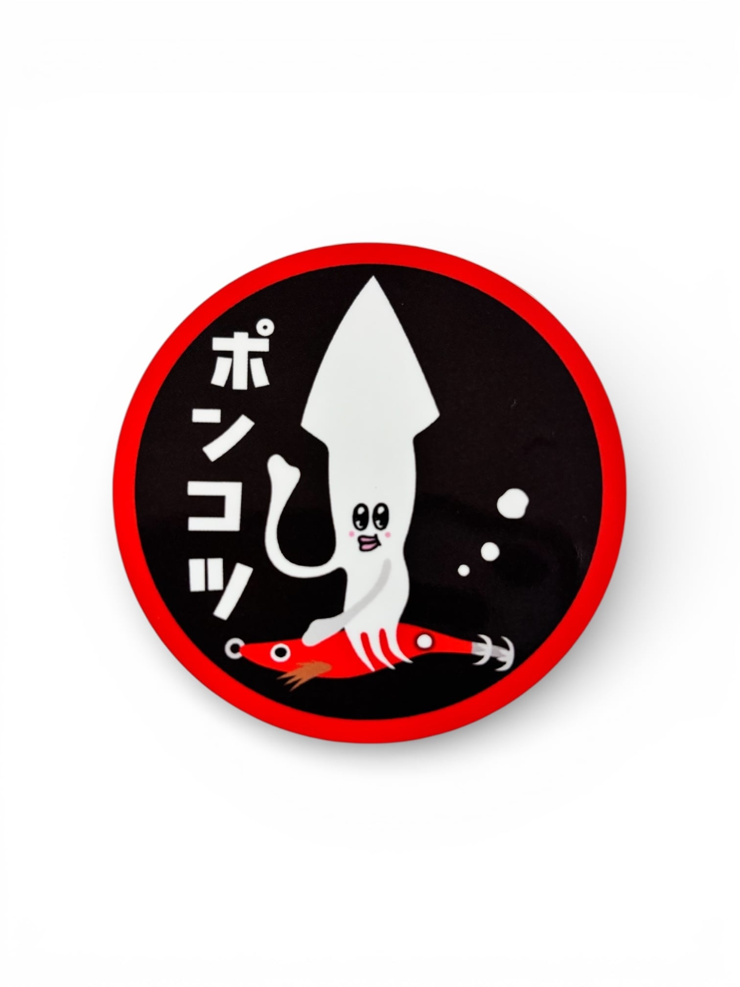 ポンコツレッド(エギ)に乗ったケンサキくんステッカー